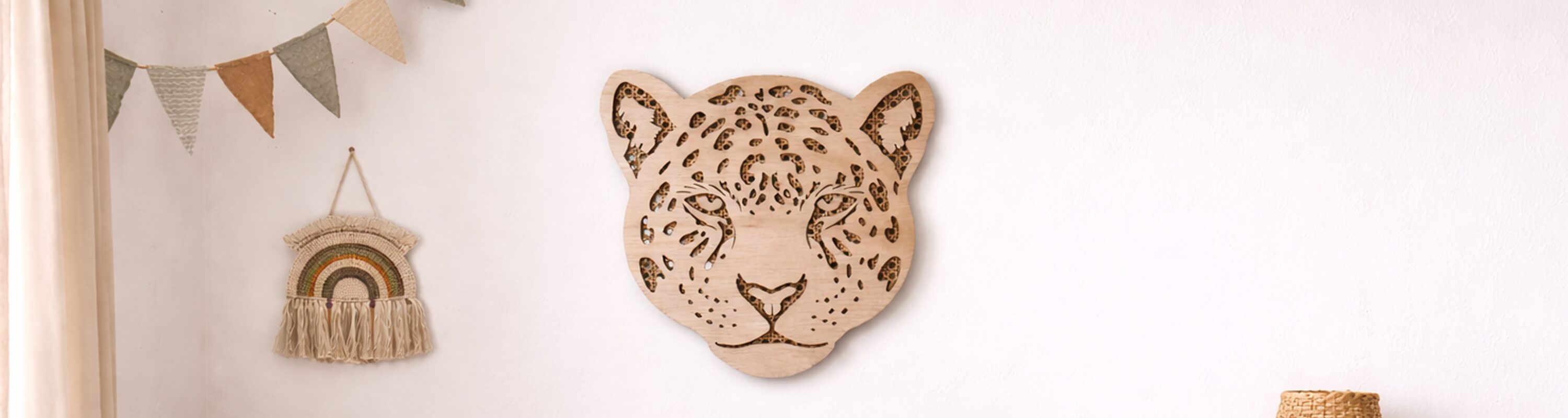 De houten dierenkoppen combineren een speels ontwerp met een natuurlijke uitstraling. Door het gebruik van hout en rotan passen ze goed bij verschillende interieurstijlen, zoals een Scandinavische of natuurlijke kinderkamer.
