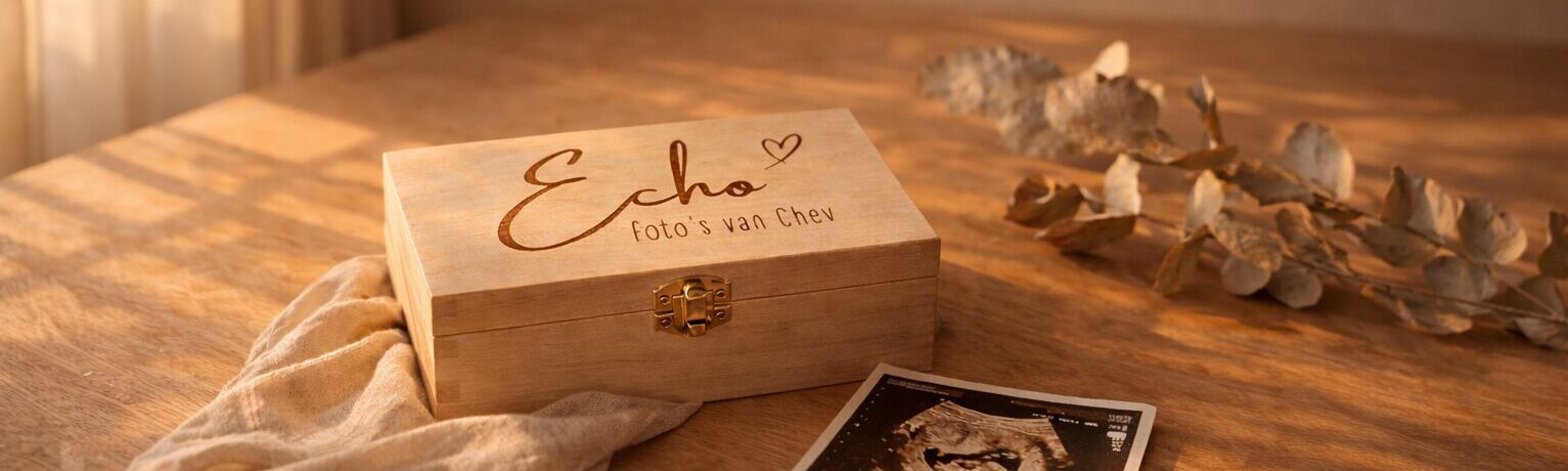 Of je nu de allereerste echo, 20-weken-echo of andere speciale momenten wilt bewaren, ons echo kistje is de perfecte keuze om deze herinneringen veilig en stijlvol op te bergen.