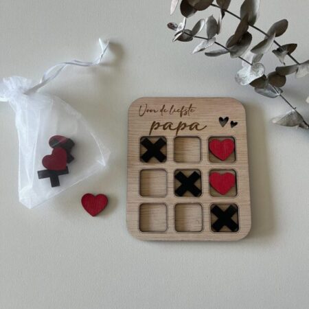 Elk spel is gemaakt van hout, waardoor het niet alleen duurzaam spel is, maar ook een tastbare herinnering aan de bijzondere momenten die je deelt met je dierbaren. Er zijn diverse varianten beschikbaar zoals de liefste mama, oma, papa, opa en valentijn. Zo haal je herinneringen op met de liefste papa bij het spelen van boter, kaas en eieren , of speel je een potje tijdens een romantisch moment met je valentijn, onze spellen brengen mensen dichter bij elkaar.
