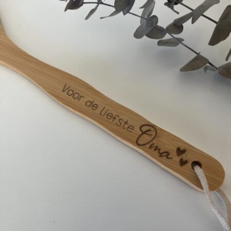 Wat deze badborstel extra bijzonder maakt, is de mogelijkheid om hem te laten graveren met een naam, datum of een persoonlijke boodschap. Of het nu een cadeau is voor jezelf of een dierbare, een gepersonaliseerde badborstel voegt een uniek en betekenisvol element toe aan de dagelijkse verzorging. Het is een prachtig geschenk voor een verjaardag, moederdag of gewoon als verrassing voor iemand die wel wat ontspanning verdient.
