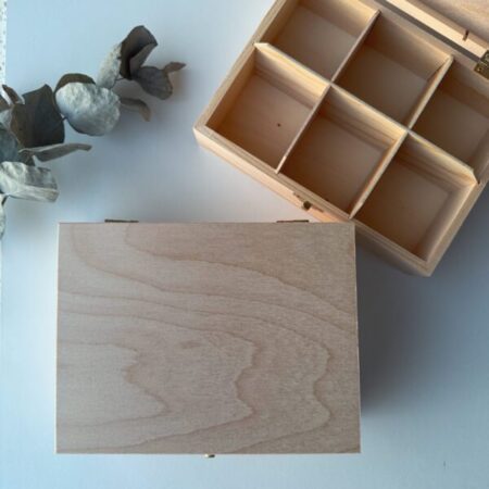 - Afmeting theedoos 6 vaks: L21 cm x B 16 cm x H 7,1 cm