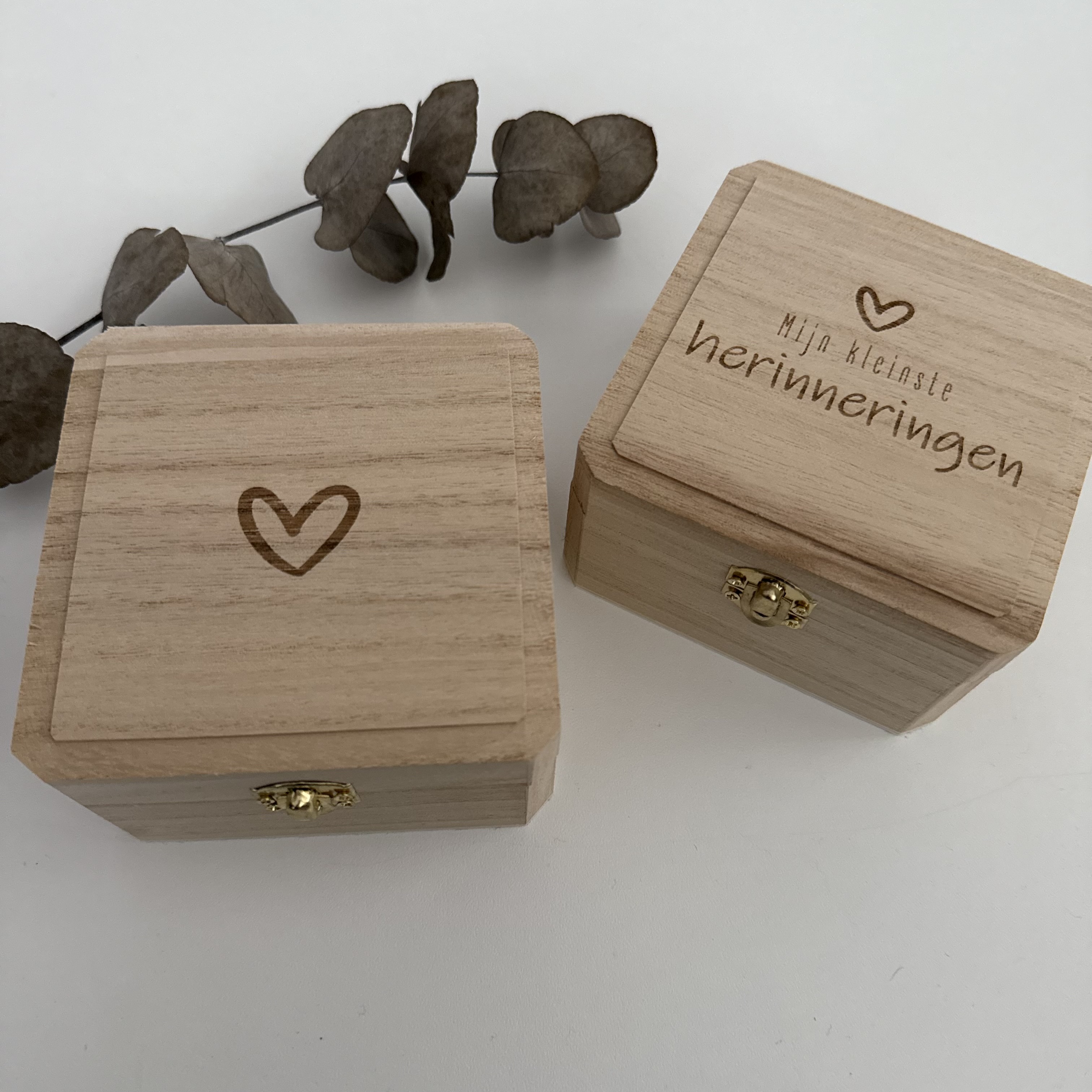 Houten bewaarkistje klein – Gegraveerd hartje