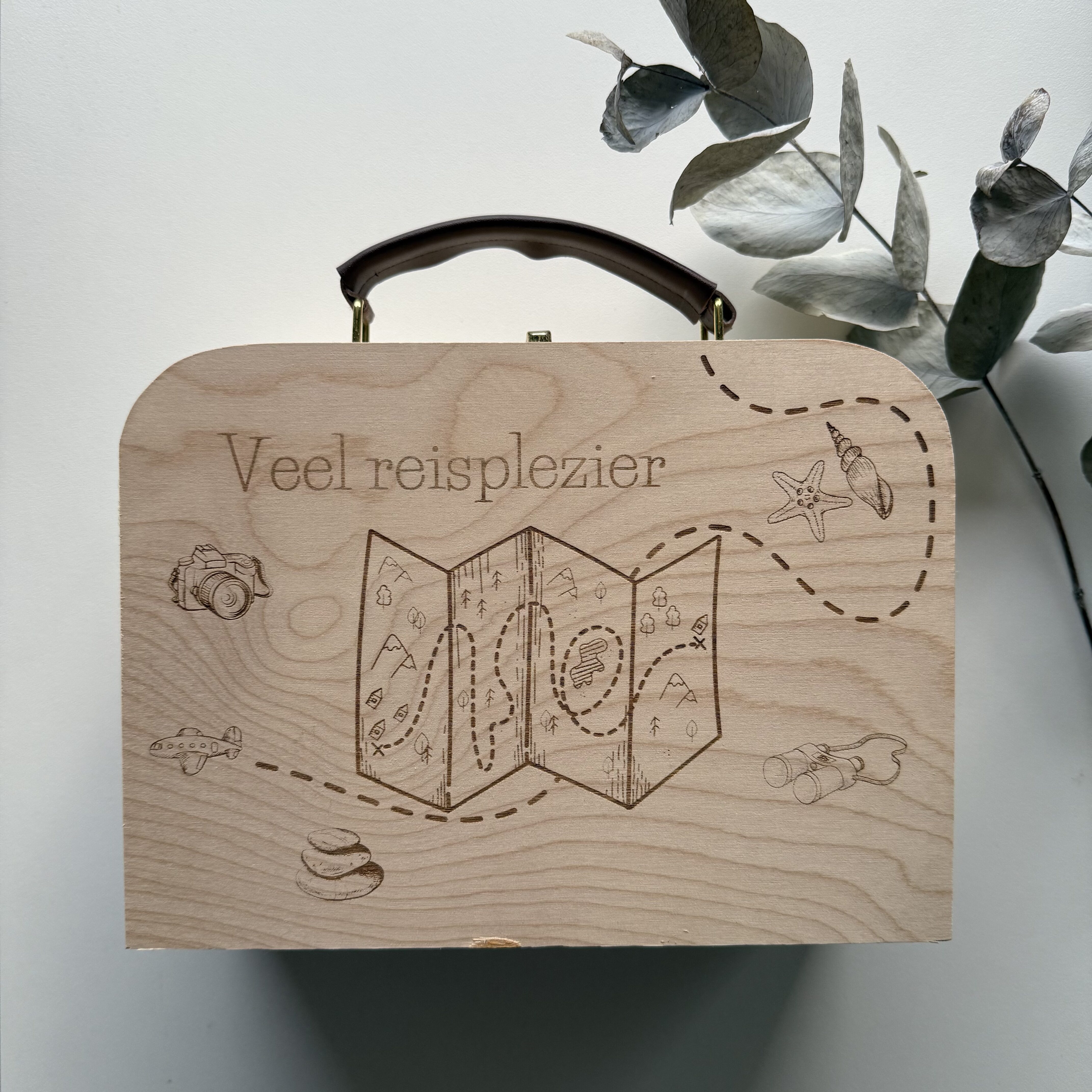 Met dit houten koffertje wordt inpakken en op pad gaan extra leuk. Iedereen kan hun favoriete spulletjes overal mee naartoe nemen en beleeft elke reis met een glimlach. Of het nu een grote vakantie is of een nachtje logeren — dit koffertje hoort erbij.