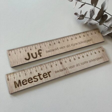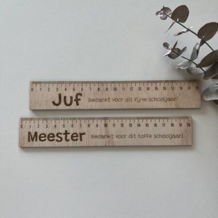 Tags: Houten liniaal juf en meester – Cadeautje meester of juf – Juffen- en meesterdag graveren