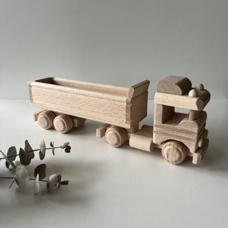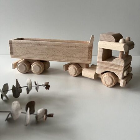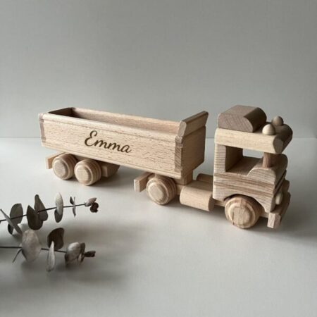Maak speeltijd extra leuk met onze nieuwe gepersonaliseerde houten vrachtwagen! Wat onze vrachtwagens echt bijzonder maakt, is de mogelijkheid tot personalisatie. Voeg een uniek element toe door de naam van je kind te laten graveren op de zijkant van de vrachtwagen. Zo wordt dit niet alleen een speelgoedvrachtwagen, maar ook een kostbare herinnering die een leven lang gekoesterd zal worden. Of het nu voor een verjaardag is, een feestdag of om te geven als kraamcadeau, deze vrachtwagens zijn niet alleen geweldig om mee te spelen, maar ook een fantastisch aandenken voor later. Geef een geschenk dat niet alleen een glimlach op het gezicht van je kleine chauffeur tovert, maar ook een blijvende indruk achterlaat in het hart van je familie.