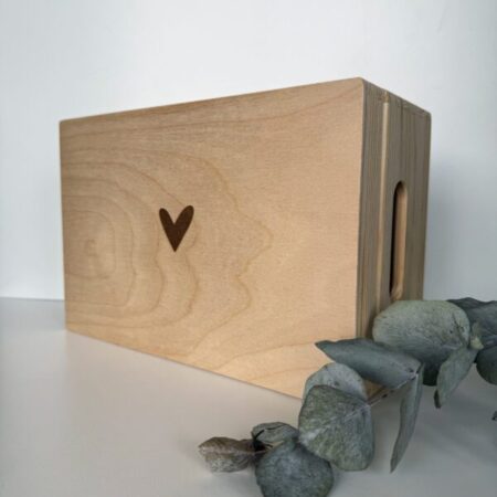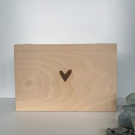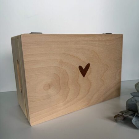 Bewaar waardevolle momenten in deze prachtige houten memorybox hartje en creëer een blijvend aandenken aan dierbare herinneringen. Deze stijlvolle houten kist is verkrijgbaar in drie verschillende formaten en biedt de perfecte plek om alle speciale momenten veilig te bewaren. Van de eerste sokjes, echofoto’s en geboortekaartjes van je baby tot dierbare kaarten, foto’s van een bruiloft of andere kostbare herinneringen – alles krijgt een veilige en persoonlijke plek in deze memorybox.