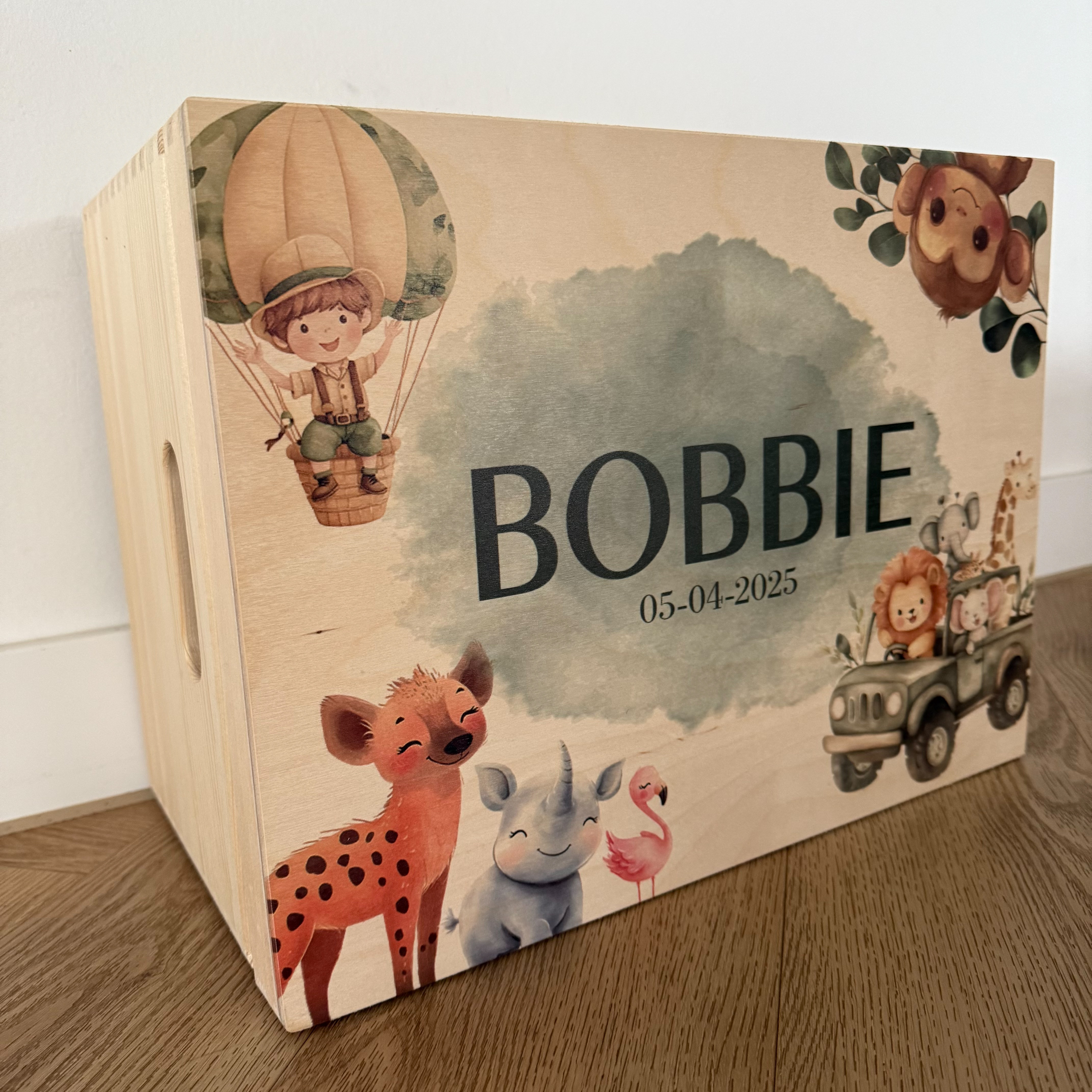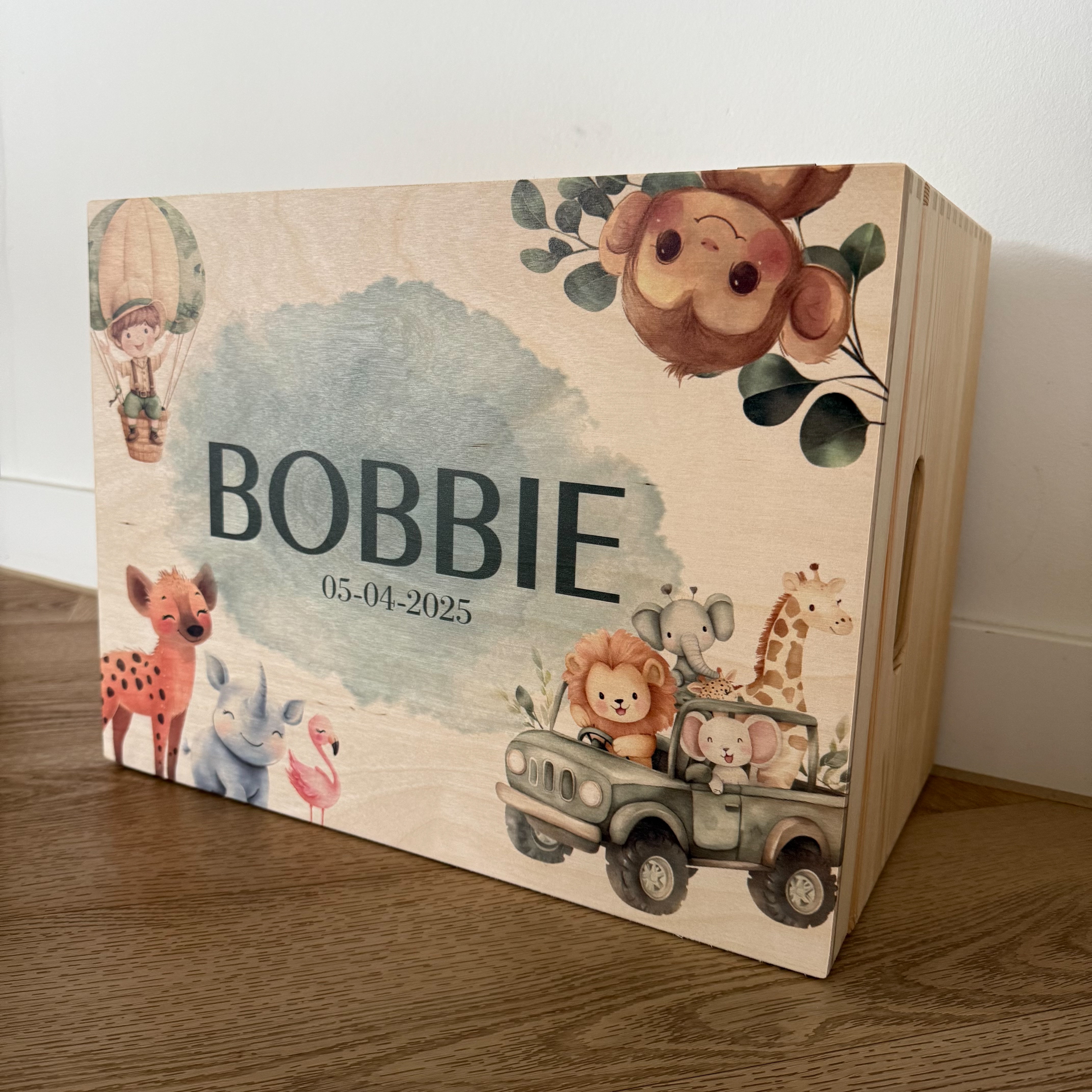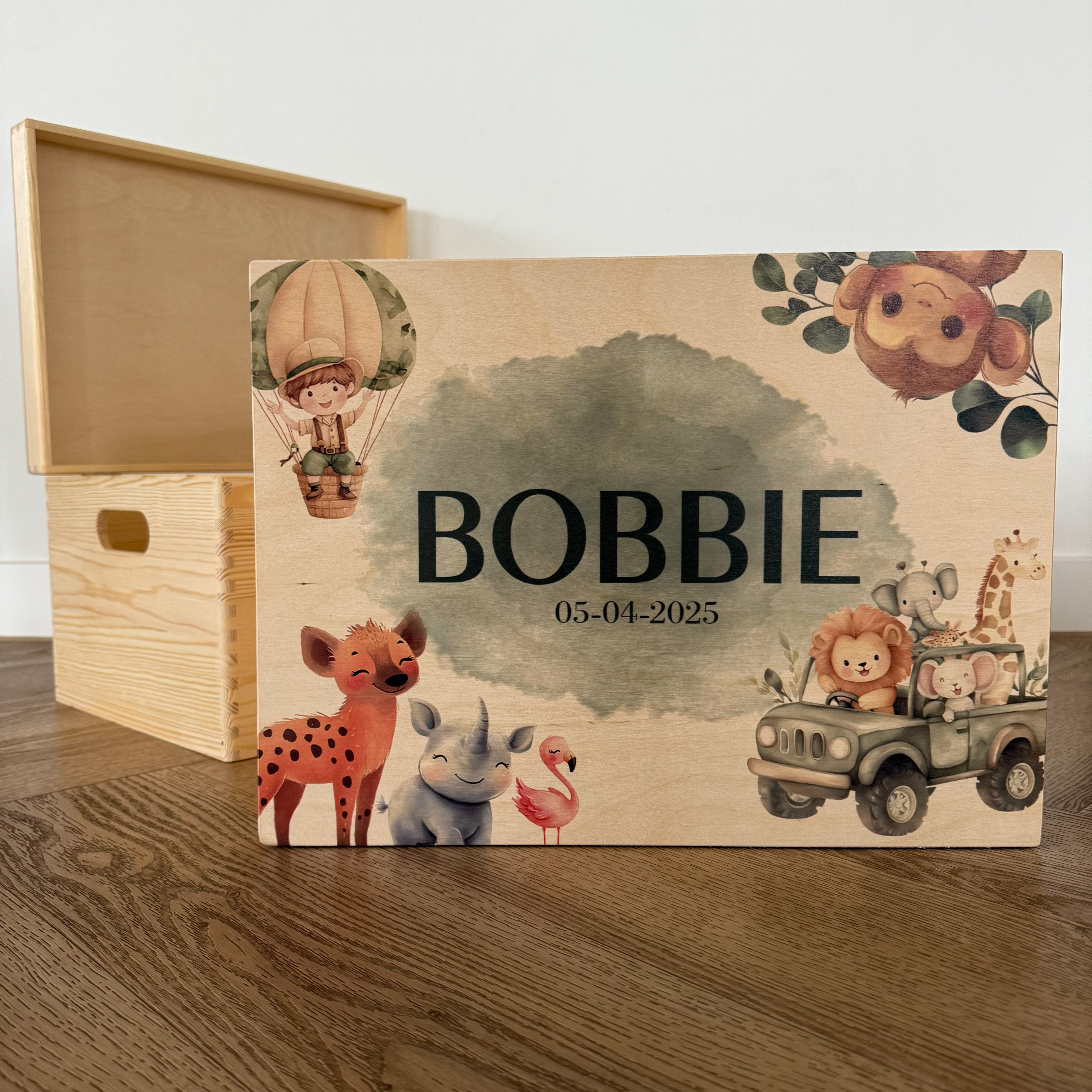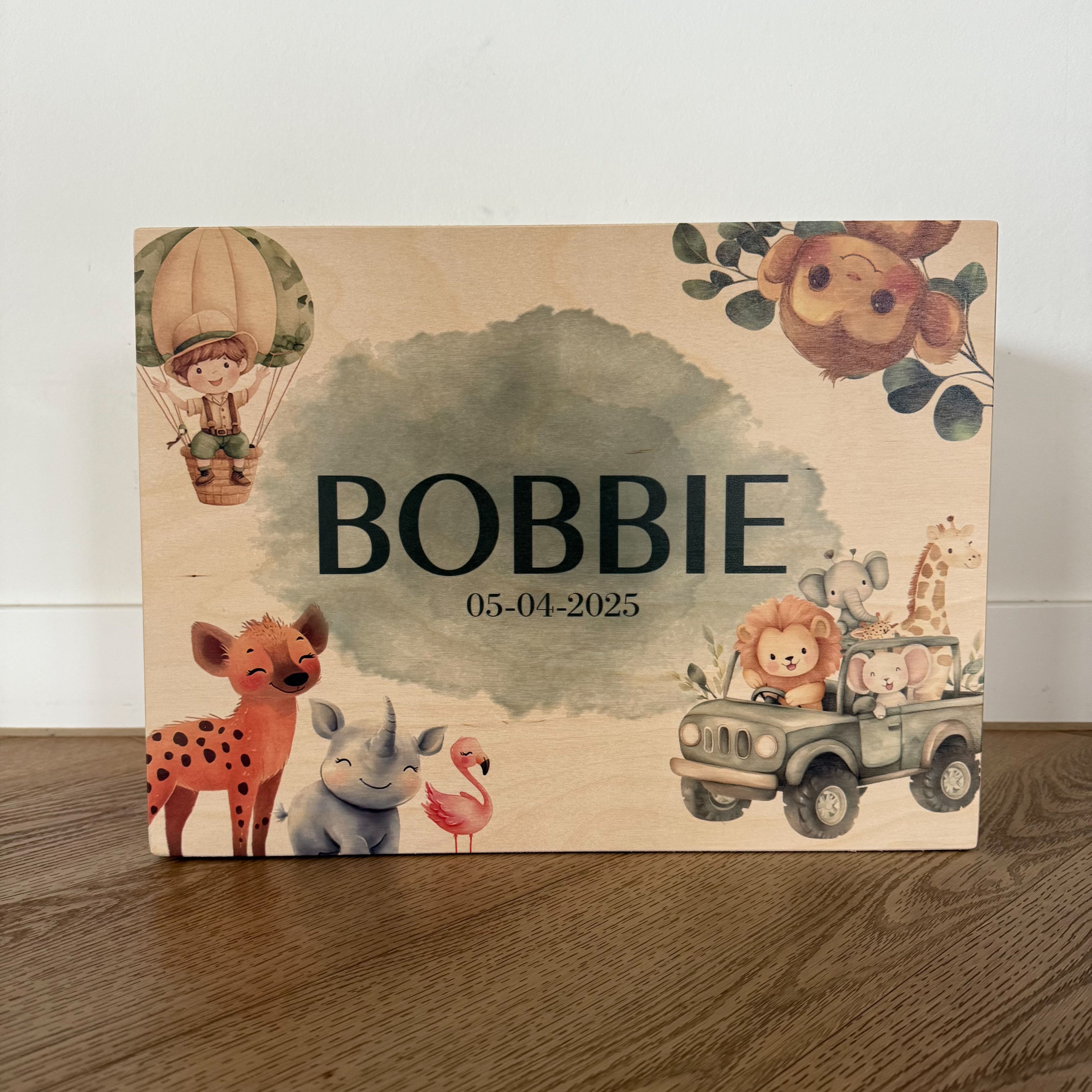 Tags: Memorybox jungle – Gepersonaliseerde memorybox – Houten memorybox – Memorybox baby – Kraamcadeau met naam – Baby herinneringen bewaren