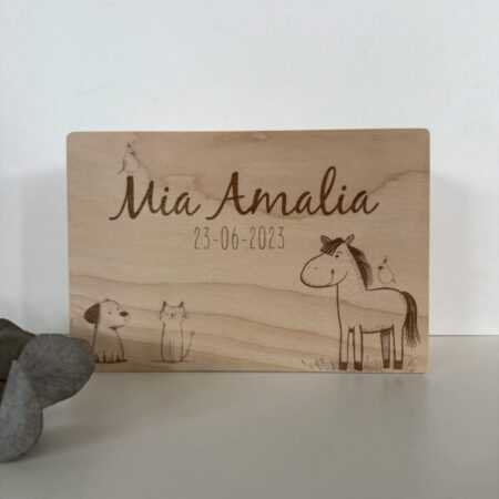 Tags: Houten Memorybox – Paard Hond Kat – Gepersonaliseerde Herinneringsdoos – Persoonlijk Cadeau Geboorte – Houten Bewaardoos Naam en Geboortedatum – Duurzaam Houten Cadeau – Uniek Aandenken