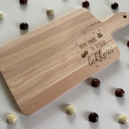 Op zoek naar een leuk en origineel cadeau voor Sinterklaas? Deze sinterklaas borrelplank met de vrolijke tekst “Wie zoet is krijgt lekkers” maakt elk pakjesavond extra gezellig! De plank is prachtig gegraveerd met een speelse illustratie en de klassieke Sinterklaas spreuk die iedereen kent.