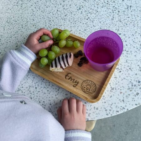 - Volledig gepersonaliseerd: Je kunt het plankje niet alleen voorzien van een naam, maar ook van een leuke afbeelding die past bij de interesses van het kind. Zo maak je het snackplankje helemaal uniek en speciaal!