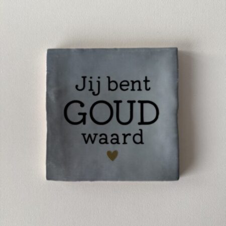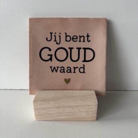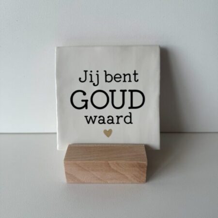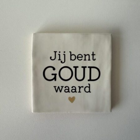 Op zoek naar een origineel en persoonlijk cadeau? Dit prachtige tegeltje met spreuk is precies wat je nodig hebt! Met de inspirerende tekst op het tegeltje – “Jij bent GOUD waard!” geef je iemand een glimlach die nooit verdwijnt.
