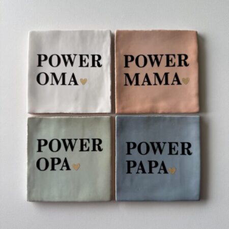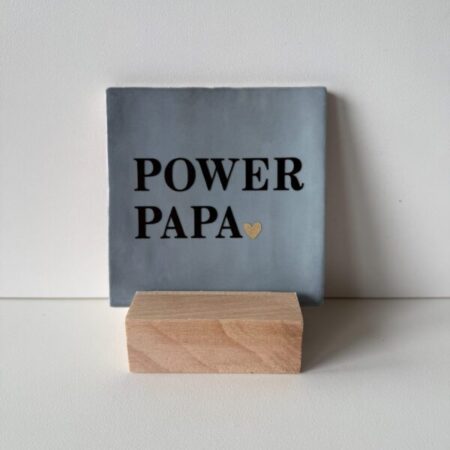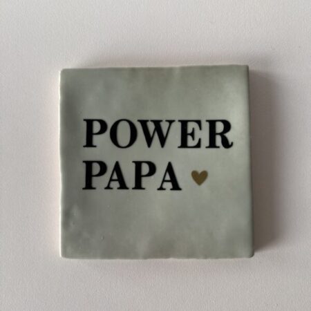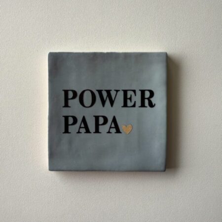 Op zoek naar een origineel cadeau voor een verjaardag, Vaderdag of gewoon zomaar? Verras je (schoon)vader of opa met dit stoere tegeltje met de tekst “Power Papa”. Een liefdevol en krachtig gebaar op een stijlvol keramieken tegeltje van 10×10 cm – perfect voor aan de muur, op de standaard of op een plankje in huis.