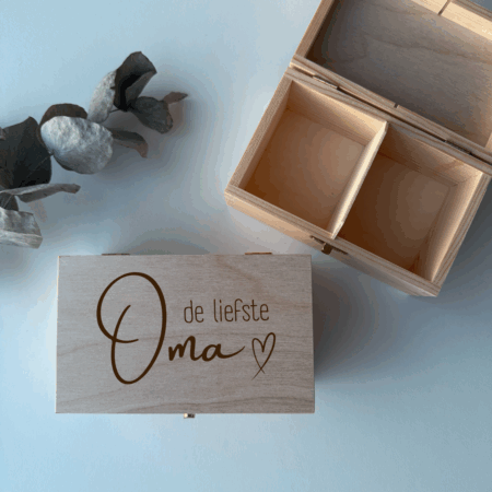 Op zoek naar een warm en origineel cadeau voor een echte theegenieter? Met deze gegraveerde houten theedoos 2 vakken geef je een persoonlijk en blijvend cadeau dat perfect past bij verjaardagen, Moederdag, kerst of als bedankje voor de juf. Of het nu gaat om je moeder, een collega die altijd thee drinkt of de juf aan wie je iets liefs wilt geven – met dit gepersonaliseerde theedoosje laat je zien dat je echt aandacht hebt besteed aan je cadeau.